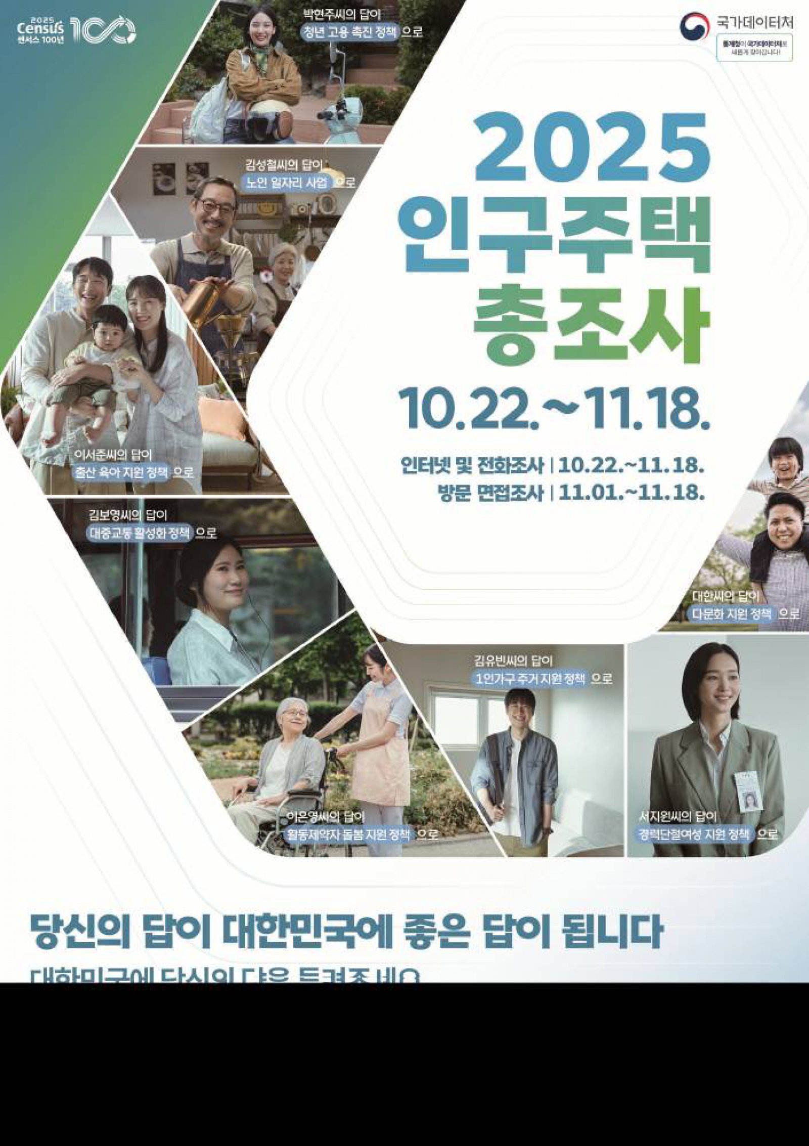 서울시는 10월 22일부터 11월 18일까지 전국적으로 실시되는 ‘2025 인구주택총조사’에 시민들의 적극적인 참여를 당부했다. 올해 조사는 1925년 첫 조사 이후 정확히 100년을 맞는다. 20일 서울시에 따르면 이번 인구주택총조사에서 서울 지역 조사 대상은 전체 가구의 약 20%인 87만3727가구에 달한다. 인구주택총조사는 5년마다 전 국민을 대상으로 시행되는 국가 최대 규모의 통계조사로, 국가데이터처(전 통계청)가 주관하고 서울시를 비롯한 전국 지방자치단체가 함께 수행한다. 서울시는 이번 조사를 통해 인구·가구 구성과 주택 구조를 종합적으로 분석하고, 향후 복지·돌봄·주거·외국인 지원 등 다양한 정책 설계의 근거 자료로 활용할 계획이다. 2025년 인구주택총조사는 총 55개 문항으로 구성됐다. 이 중 13개 문항은 행정자료로 자동 대체돼 응답자의 부담을 줄였다. 또한 ‘비혼동거’ ‘결혼 의향’ ‘가족돌봄시간’ ‘가구 내 사용 언어’ ‘한국어 실력’ ‘임대 주체’ ‘자전거 보유’ 등 7개 신규 항목이 추가돼 사회 변화상을 더욱 세밀하게 반영할 수 있도록 했다. 조사는 10월 22일부터 31일까지 인터넷과 전화로 진행되며, 11월 1일부터 18일까지는 조사원이 직접 방문해 면접조사를 한다. 강옥현 서울시 디지털도시국장은 “AI와 데이터 기반 행정을 통해 시민이 직접 만든 데이터를 복지·주거·돌봄 정책에 반영하고, 시민참여형 데이터 행정을 실현하겠다”며 “이번 조사가 미래 도시정책의 방향을 결정짓는 중요한 기초 자료가 될 것”이라고 강조했다.임재혁 기자 heok@donga.com}