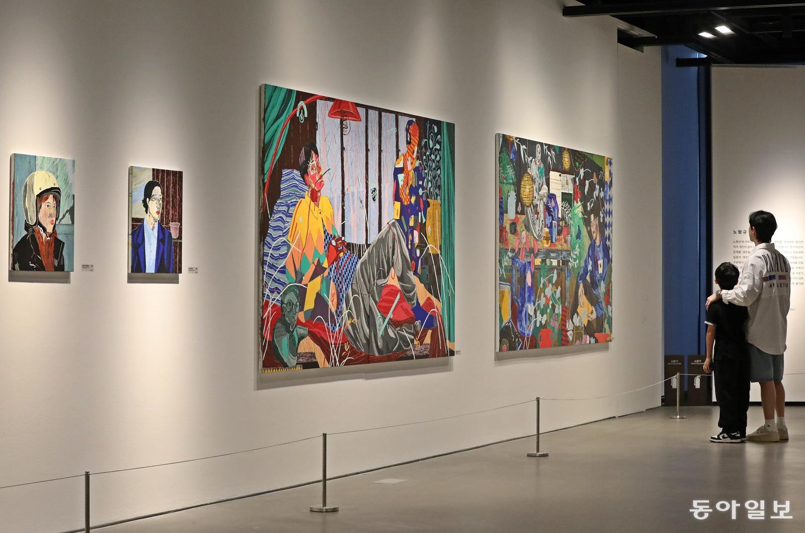 21일 대전 유성구에 있는 한 백화점을 찾은 시민들이 지역에서 활동하고 있는 청년 작가 5명의 작품을 선보이는 ‘2025 젊은 대전작가들’ 전시회를 감상하고 있다. 김태영 기자 live@donga.com}