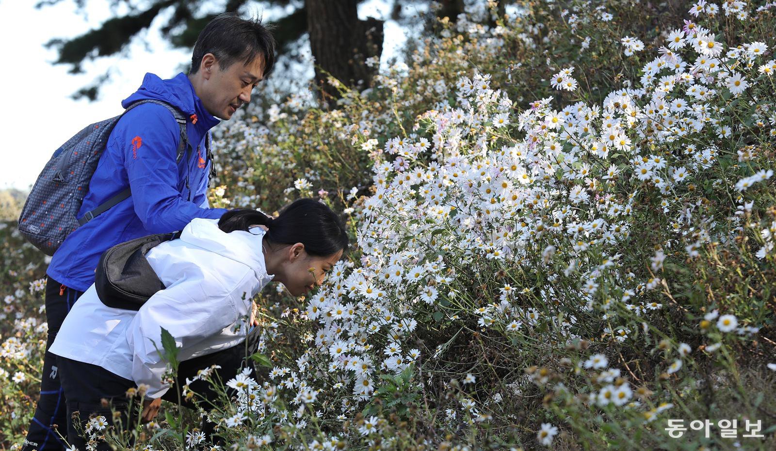 30일 세종 장군면의 한 야산에서 시민들이 하얗게 핀 구절초 군락 사이를 거닐며 늦가을의 정취를 만끽하고 있다. 김태영 기자 live@donga.com}