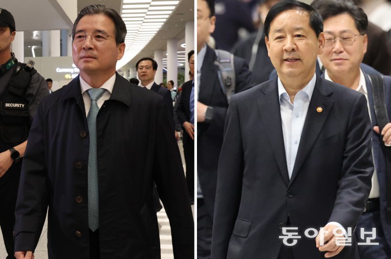 김용범 대통령정책실장과 김정관 산업통상부 장관이 22일 한미 3500억 달러(약 501조 원) 대미(對美) 투자 펀드 협상을 위해 다시 방미길에 올랐다. 이들은 하워드 러트닉 미국 상무장관을 만나 이재명 대통령의 의중이 담긴 최종안을 제시할 것으로 전해졌다. 정부는 핵심 쟁점인 3500억 달러 조성 방식을 두고 직접 투자 및 대출·보증 비율 등에 대한 완전한 합의가 이뤄져야 대미 투자펀드 양해각서(MOU)에 서명할 수 있다는 입장을 밝혔다. 김 실장은 이날 출국 전 기자들과 만나 “양국 간 의견이 많이 좁혀져 있는데 한두 가지 입장이 팽팽하게 대립하는 분야가 있다”면서 “그런 쟁점에 대해 우리 국익에 맞는 타결안을 만들기 위해 다시 나가게 됐다”고 전했다. 미국은 대출과 보증 대신 전액 현금 투자가 이뤄져야 한다는 기존 입장에선 물러섰지만 여전히 한국에 부담스러운 수준의 현금 직접 투자를 요구하고 있다. 정부는 장기 분할 투자를 비롯해 대출·보증 확대 및 자금 조달 방안 비율 확정을 위한 담판에 나설 것으로 알려졌다. 대미 관세협상 키맨들의 동시 방미는 21일 오후 결정됐다고 한다. 이 대통령은 이날 김 실장 등으로부터 두 차례 대미 협상 보고를 받았다. 미국에서 제시한 안에 대해 이 대통령의 지시 사항이 담긴 최종 제안을 들고 무박 3일 방미길에 올랐다는 것. 한편 김 실장은 “쟁점이 남은 상태에서 특정 시점까지 합의된 내용을 가지고 MOU를 하고 그런 안은 정부에서 고려하지 않는다”면서 “7월 (관세 합의에서) 양국 간 타결된, 그 안을 실행할 수 있는 MOU 전체에 대해 합의가 돼야 성과물로 마무리가 될 것”이라고 강조했다.신규진 기자 newjin@donga.com윤다빈 기자 empty@donga.com}