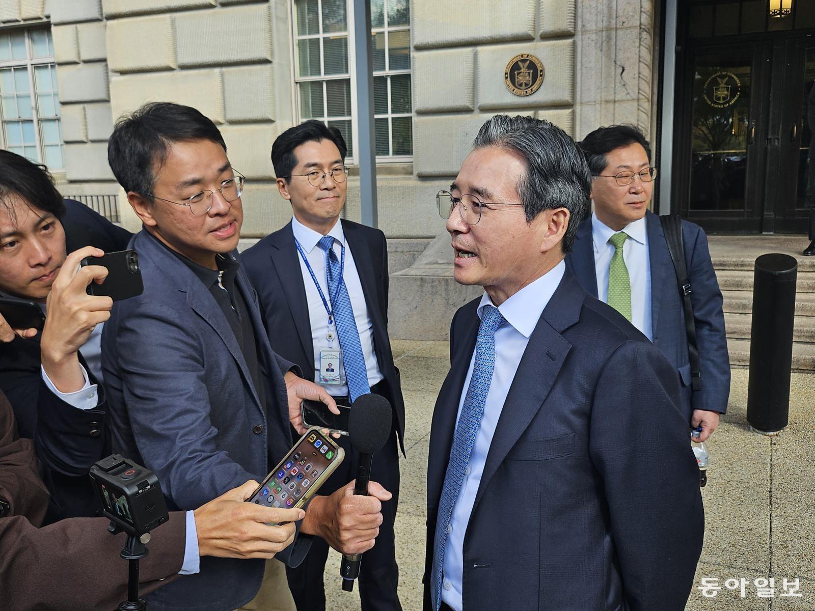 김용범 대통령정책실장과 김정관 산업통상부 장관이 22일(현지 시간) 하워드 러트닉 상무장관과 미국 워싱턴에서 만나, 3500억 달러(약 501조 원) 규모의 대미(對美) 투자 펀드 관련 핵심 쟁점을 막판 조율했다. 김 실장은 이날 오후 미 상무부 청사에서 2시간가량 러트닉 장관 등과 회동 직후 취재진과 만나 “쟁점이 하나만 있는 건 아니지만, 아주 많지는 않다”며 “오늘 남아 있는 쟁점에 대해 많은 이야기를 또 했다”고 전했다. 그러면서 “일부 진전이 있었다”고 밝혔다. 그러면서 “아시아태평양경제협력체(APEC) 정상회의 기간 중 많이 만나면 좀 더 상호 간 입장을 이해하게 되는 것”이라며 “그래서 그런 진전이 있었다”고도 했다. 앞서 김 실장은 이날 오전 워싱턴 덜레스 국제공항 입국장에서 취재진과 만나선 “(협상이) 꽤 마지막까지 와있다”며 “많은 주제는 이제 의견이 많이 근접했다”고 전한 바 있다. 또 “한두 가지 주제에 대해 아직 양국의 입장이 좀 차이가 많다”면서도 “많은 쟁점에 대한 이견은 어느 정도 조율 돼있다”고 덧붙였다. 그런 만큼 이날 청사를 나서면서 김 실장이 회동 결과를 두고 “진전이 있었다”고 평가한 건, 막판까지 서로 이견이 있었던 그 일부 사안에 대해서도 견해차를 좁혔을 가능성이 제기된다. 정부는 장기 분할 투자를 비롯해 대출·보증 확대 및 자금 조달 방안 비율 확정 등을 위해 이날 미 측과 막판 의견 조율에 나선 것으로 보인다.다만 김 실장은 ‘(헙상) 막바지 단계로 보면 되는가’란 질문엔 “협상이라는 건 늘 그렇지만, 끝날 때까지 끝난 건 아니다”라고 강조했다. 완전한 합의까진 어떤 변수가 있을지 모르니, 여전히 더 두고 봐야 한다는 의미로 풀이된다. 또 도널드 트럼프 대통령의 성향이 워낙 즉흥적인 만큼, 이를 고려해 ‘신중론’을 제기한 것일 수도 있다.김 실장과 김 장관은 이날 애틀랜타로 이동해 바로 귀국한다. 대미 관세협상 키맨들이 불과 2시간 회동을 위해 이번에 급거 워싱턴을 찾은 건, 그만큼 한미 양측 모두 이달 말 열리는 APEC 정상회의 전에 무역협상을 마무리 지으려는 공감대는 형성돼 있기 때문인 것으로 보인다. 김 실장은 이날 APEC 무역협상 타결 가능성에 대해 “(APEC이) 우리에겐 중요한 계기”라고 했다. 또 서로 간 최종 조율 단계로, 이번에 마지막 세부 조정이 필요했을 수도 있다. 김 실장 등은 미국에서 제시한 안에 대해 이 대통령의 지시 사항이 담긴 최종 제안을 들고 이번에 워싱턴에 온 것으로 전해졌다.워싱턴=신진우 특파원 niceshin@donga.com}