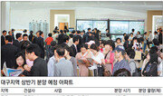 지난달 20일 화성산업이 선보인 대구 수성구 범어동 ‘범어숲 파크드림S’ 본보기집(모델하우스)에는 일주일간 5만여 명이 몰렸다. 57m²(약 17평) 오피스텔의 경우 최고 경쟁률 71 대 1을 기록했다. 대구지역에서는 10여 년 만에 최고 경쟁률이었다. 같은 달 27일 본보기집을 연 포스코건설의 동구 봉무동 ‘이시아폴리스 더샵 2차’에는 주말 동안 1만4000여 명의 수요자들이 찾았다. 같은 날 GS건설의 동구 ‘신천 자이’에도 1만여 명이 방문한 것으로 나타났다. 부동산 업계는 “가격 경쟁력과 중소형 아파트를 내세운 전략이 주요했다”고 말했다. 반면 5월 9일 달서구 감삼동의 한 아파트 사업은 달서구청으로부터 건설계획 승인이 취소됐다. 지하 2층 지상 30층 2개 동 201채를 건립하기로 했지만 2007년 이후 부동산경기 침체 등의 영향으로 착공조차 하지 못했다. 최근 달서구에는 본리동 2곳, 감삼동 1곳 등 모두 4곳의 아파트 건설사업이 취소됐다. 2003년 6월 착공했던 본리동 사업장(총면적 4만2000m²·약 1만2000평)은 시공사가 분양에 실패하면서 얼마 전 토지 소유권이 경매로 넘어갔다. 달서구 관계자는 “실질적 착공도 없었고 공사 완료가 현실적으로 불가능해 취소 처분을 했다”고 말했다. 대구지역 부동산 시장이 아파트 분양 호조세로 순풍이 불고 있다. 하지만 건설 경기침체 영향으로 미착공 사업장이 속출하는 등 악재도 여전하다. 업계에서는 부동산 시장이 바닥을 친 것으로 보고 있지만 주택 매매나 신규분양 성공 등 활성화로 이어질지는 미지수라는 판단이다. 1일 대구시에 따르면 미분양 아파트는 4월 말 현재 1만561채로 지난해 10월 1만5304채보다 31% 감소했다. 특히 미분양 아파트가 최고치였던 2009년 1월 2만1560채에 비하면 51% 줄어든 수치다. 이 같은 분위기에 힘입어 건설사들은 아파트 분양 시장에 뛰어들고 있다. 6월까지 대구지역에 분양 예정인 아파트는 6000여 채에 이른다. 전용면적 85m²(약 25평) 이하 중소형 아파트로 설계 변경하는 등 실수요자 요구에 맞게 분양에 나서고 있다. 아파트 가격 또한 주변 시세보다 3.3m²당 200만∼300만 원 낮게 선보이는 등 모처럼 활기를 보이고 있는 분양시장을 놓치지 않으려는 모습이다. 그러나 대구지역 곳곳에는 흉물처럼 방치되고 있는 미착공 주택건설 사업장이 널려 있다. 대부분 사업성이 낮아 사업을 포기하거나 사업주가 부도가 난 경우다. 시에 따르면 4월 말 대구지역 미착공 사업장은 75곳에 이른다. 아파트 규모도 4만4000여 채에 달하는 것으로 나타났다. 김영욱 대구부동산경제연구원 원장은 “그동안 전세대란으로 고통 받았던 일부 수요자들로 인한 ‘반짝 상승’일 뿐 부동산 시장 전반이 살아났다고 판단하기에는 이르다”며 “여전히 대부분 수요자들의 관망세가 뚜렷한 상황”이라고 설명했다.장영훈 기자 jang@donga.com}