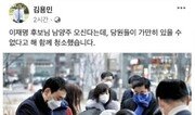 더불어민주당 김용민 의원이 25일 자신의 지역구인 경기 남양주에 이재명 대선 후보가 방문한다며 당원들과 길거리를 청소하는 모습을 찍어 올렸다가 논란이 일자 삭제했다.김 의원은 이날 자신의 페이스북에 “이 후보님 남양주 오신다는데, 당원들이 가만히 있을 수 없다고 해 함께 청소했다”며 여러 장의 사진을 공유했다. 사진에는 김 의원이 당원들과 거리에서 쓰레기를 주우며 청소하는 모습이 담겼다.그러나 일부 유권자들의 반응은 싸늘했다. 한 누리꾼은 해당 게시글에 “환경 봉사하러 쓰레기 수거한다면 존중하지만 김 의원 말대로 ‘이 후보님이 남양주 오신다’해서 쓰레기 줍는다는 게 말이 되냐. 이재명이 수령님이냐. 이재명은 남양주에 쓰레기 있으면 남양주 분위기 왜 이래? 야단 치냐. 쓰레기 있으면 남양주 분위기 감점되냐. 이재명이 남양주에 가면 쓰레기를 치워야 하는지 이유를 말해봐라”는 댓글을 남겼다. 이후 김 의원은 게시글을 삭제했다.국민의힘 김용태 최고위원은 26일 페이스북에 “민주당의 586(50대·80년대 학번·60년대 출생) 용퇴가 무슨 소용이 있나. 어차피 이들의 앵무새를 자처하고 있는 김용민, 김남국 의원 등이 남아있는데”라고 비판했다.그러면서 “지역 내 쓰레기 청소는 존중하지만, 그 목적이 이 후보께서 오신다는 것에 한심할 따름”이라며 “정치가 국민을 바라봐야지, 권력자만 쫓아서 되겠나. 이것이 이 후보가 말씀하신 대동세상인가”라고 덧붙였다. 대동세상은 모든 사람이 함께 어울려 평등하게 살아가는 세상이라는 말이다.이혜원 동아닷컴 기자 hyewon@donga.com}