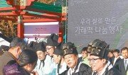 이동필 농림축산식품부 장관(맨 오른쪽)은 11월 11일 ‘농업인의 날’을 맞아 서울시청 앞 서울광장에서 시민들에게 우리 쌀로 만든 가래떡을 나눠주는 행사를 열었다. 이 행사에 앞서 이 장관과 농업인 등 1000여 명은 서울 중구 농협중앙회에서 정동길을 거쳐 서울광장 앞까지 1.5km 구간을 농악을 울리며 행진한 뒤 서울광장에서 추수감사제를 지냈다. 농업인의 날은 농업의 소중함을 알리기 위해 1996년 법정기념일로 지정됐다. 농식품부는 최근 우리 쌀 소비를 촉진하기 위해 11월 11일에 막대과자 대신 가래떡을 주고받자는 캠페인을 벌이고 있다. 농림축산식품부 제공}