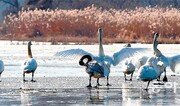 천연기념물 201호인 ‘겨울 진객’ 큰고니(백조)가 경기 광주시 북한강 지류인 경안천에서 따뜻한 햇볕을 쬐고 있다. 러시아 북부 툰드라와 시베리아에서 번식하는 큰고니는 10월 말경 우리나라에 와 겨울을 나고 이듬해 4월 고향으로 되돌아간다. 이날 경안천 일대에서는 200여 마리의 큰고니가 관측됐다. 광주=변영욱 기자 cut@donga.com}