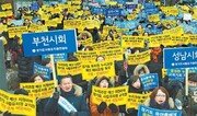 한국유치원총연합회 경기지회 소속 유치원 원장과 교사 등 850여 명이 경기 수원시 경기도청 정문 앞에서 누리과정 예산 편성과 집행을 촉구하는 집회를 열고 있다. 수원=변영욱 기자 cut@donga.com}