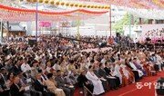 불기 2562년 부처님오신날을 맞아 22일 서울 조계사를 비롯한 전국 사찰에서 봉축법요식이 일제히 봉행됐다. 이날 행사는 6가지 공양물을 부처님 앞에 올리는 육법공양 등 불교 의식과 대한불교조계종 종정 진제 스님의 봉축 법어, 총무원장 설정 스님의 봉축사 등으로 이어지며 1시간가량 진행됐다. 진제 스님은 법어에서 “진리의 세계에는 나와 남이 따로 없고 시기와 질투, 갈등과 대립이 없으니 어찌 남을 내 몸처럼 아끼고 사랑하지 않겠나”라며 “진흙 속에서 맑고 향기로운 연꽃이 피어나듯 혼탁한 세상일수록 부처님의 지혜를 등불로 삼아야 한다”고 밝혔다. 설정 스님은 봉축사에서 “분단의 긴 겨울이 지나고 평화의 봄이 찾아왔다”라며 “평화의 실천을 위해 진보와 보수, 계층을 넘어 하나로 나아가자. 지혜와 자비의 정신으로 자신의 삶을 윤택하게 하고 세상의 평화를 주도하는 주인공이 돼야 한다”고 말했다. 문재인 대통령은 도종환 문화체육관광부 장관이 대독한 축사에서 “오늘 한반도에 화합과 협력, 평화가 실현되어가고 있는 것도 부처님의 자비에 힘입은 바 크다”라며 “평화와 번영의 새로운 한반도 시대를 맞이할 수 있도록 빈자일등(貧者一燈·가난한 사람이 밝힌 등불 하나)의 마음으로 축원해 달라”고 밝혔다. 북측 조선불교도연맹과 3년 만에 공동채택한 공동발원문도 낭독됐다. 남북 불교계는 발원문에서 “판문점 선언을 민족공동의 통일강령, 자주통일의 법등으로 높이 들고 그 실천 행에 용맹정진하겠다”라며 “삼천리 방방곡곡 이르는 곳마다 평화와 통일의 법음이 높이 울리게 하겠다”고 다짐했다. 이날 조계사 행사에는 천주교주교회의 의장인 김희중 대주교, 이홍정 한국기독교교회협의회 총무, 한은숙 원불교 교정원장, 이정희 천도교 교령, 김영근 성균관장, 박우균 한국민족종교협의회장 등 이웃 종교인을 비롯해 정세균 국회의장, 홍준표 자유한국당 대표, 유승민 바른미래당 공동대표, 이정미 정의당 대표, 박원순 김문수 안철수 서울시장 후보 등 1만여 명이 참석했다. 김갑식 전문기자 dunanworld@donga.com}