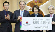 사회복지공동모금회는 김동녕 한세예스24홀딩스 회장(73), 조영수 경기대 명예교수(72) 부부가 각자 1억 원을 기부해 고액 기부자 클럽인 ‘아너소사이어티’에 가입했다고 10일 밝혔다. 두 사람은 이날 오후 서울 중구 사랑의열매 회관을 찾아 기부식을 가졌다. 올해 부부가 아너소사이어티에 동반 가입한 것은 김 회장과 조 교수가 처음이다. 두 사람은 나란히 1776, 1777호 회원으로 가입했다. 부부 회원으로는 133호다. 김 회장은 연매출 2조5000억 원의 한세예스24홀딩스를 운영하고 있다. 세계 7개국 13개 해외법인에서 연간 3억 장 이상의 의류를 생산하는 한세실업, 국내 1위 인터넷서점 예스24와 동아출판, 캐주얼웨어 전문업체 한세엠케이, 유아복 제조업체 한세드림, 데님브랜드 FRJ를 계열사로 두고 있다.권기범 기자 kaki@donga.com}