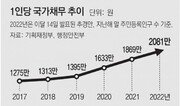 문재인 정부가 출범 이후 10번째 추가경정예산(추경) 편성에 나서면서 올해 국민 한 사람당 부담해야 할 국가채무가 처음으로 2000만 원을 넘어설 것으로 전망된다. 16일 기획재정부에 따르면 올해 국가채무는 본예산 기준으로 1064조4000억 원이다. 여기에 정부가 편성하고 있는 추경 14조 원 가운데 10조 원을 적자국채 발행으로 조달한다고 가정하면 올해 국가채무는 1074조4000억 원으로 늘어난다. 홍남기 경제부총리 겸 기획재정부 장관은 14일 “14조 원 규모의 추경 재원은 대부분 적자국채 발행으로 충당될 것”이라고 밝혔다. 올해 국가채무를 지난해 말 주민등록인구 5164만 명으로 나누면 올해 1인당 국가채무는 2081만 원이 된다. 1인당 국가채무는 2014년 처음으로 1000만 원을 넘어선 지 8년 만에 2배로 불어나는 셈이다. 나랏빚이 얼마나 빠른 속도로 늘어나고 있는지 보여주는 국회예산정책처 ‘국가채무시계’에 따르면 이날 오후 1인당 국가채무는 1861만 원으로 2000만 원 돌파를 눈앞에 뒀다. 국가채무는 문재인 정부 첫해인 2017년 660조2000억 원이었지만 지난해 965조3000억 원으로 4년 만에 46.2% 증가했다. 이번 추경까지 포함하면 문재인 정부 5년 만에 국가채무는 400조 원 넘게 불어난다. 신종 코로나바이러스 감염증(코로나19) 확산에 따른 피해를 지원하는 재정 지출은 불가피한 측면이 있지만 향후 재정 수요를 감안하면 관리가 필요하다는 지적이 나온다. 하지만 나랏빚 관리 지표인 재정준칙 도입은 지지부진하다. 정부는 2020년 12월 국내총생산(GDP) 대비 국가채무 비율을 60%, 통합재정수지 적자 비율은 3% 이내로 관리하도록 정한 국가재정법 개정안을 국회에 제출했지만 통과되지 못하고 있다. 정부는 이번 주 국무회의에서 추경 편성안을 의결할 방침이다. 국회 심의가 빠르게 이뤄지면 다음 달 설(2월 1일) 연휴 뒤에 지원금이 지급될 것이란 관측이 나온다. 세종=박희창기자 ramblas@donga.com}