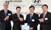 현대자동차가 세계적 산업용 가스회사인 프랑스의 ‘에어리퀴드’와 손잡고 친환경차인 수소연료전지차(FCEV·수소차) 시장 확대에 나선다. 현대차는 4일(현지 시간) 에어리퀴드와 수소차 시장 활성화를 위해 양해각서(MOU)를 체결했다고 밝혔다. 에어리퀴드는 수소 생산 및 수소 플랜트 건설과 운영에 기술 노하우를 갖고 있는 기업이다. 현대차는 향후 수소 충전소 관련 비즈니스 모델 개발과 수소 활용도 제고 등에서 이 회사와 협력해 수소차 시장을 선도해 나갈 계획이다. 수소차는 연료전지 스택에서 수소와 산소를 반응시켜 생산된 전기로 모터를 움직여 주행하는 자동차다. 화력에너지로 생산하는 전기를 에너지원으로 삼는 전기차와 달리 연료 자체가 무공해여서 ‘궁극의 친환경차’로 불리기도 한다. 또 최근 미세먼지에 대한 경각심이 더욱 높아지고 있는 가운데 수소차의 미세먼지 정화 기능도 관심을 끌고 있다. 현대차는 MOU 체결 후 에어리퀴드 연구소에서 수소차의 미세먼지 저감 효과를 확인할 수 있는 실험을 진행했다. 이 자리에는 프랑스를 국빈 방문 중인 박근혜 대통령도 참석했다. 수소차는 공기 중 산소를 빨아들여 차량 내에 저장된 수소와 결합시켜 전기를 만든다. 이를 위해 외부 공기를 필터로 거르는 과정이 필수적이다. 현대차 관계자는 “수소차의 흰색 필터가 미세먼지 저감 시연 이후 검정 매연을 뿌려 놓은 듯 까맣게 변색됐다”며 “수소차 1대가 1km를 달리면 미세먼지를 최대 20mg 저감하는 효과가 있다”고 말했다. 디젤 차량이 배출하는 미세먼지에 의한 대기오염 우려가 커지면서 미국, 유럽, 중국, 일본 등 주요 국가들은 수소차 보급과 충전 인프라 확대에 나서고 있다. 일본은 2030년까지 수소차는 80만 대, 수소 충전소는 900기까지 늘리겠다는 계획을 세웠고 중국은 정부 차원에서 수소버스 개발을 지원하고 있다. 한국은 3일 발표한 미세먼지 관리 특별 대책의 일환으로 국내 수소차 누적 대수를 2020년까지 1만 대로 늘리기로 했다. 현재 9개에 불과한 수소 충전소는 2020년까지 100곳으로 확대한다. 전문가들은 각국의 배출 규제가 강화되는 2021년부터는 이산화탄소(CO₂) 배출 제로인 수소차가 더욱 늘어날 것으로 보고 있다. 시장조사업체인 ‘프로스트 앤드 설리번’에 따르면 전 세계 수소차는 2020년 5만8034대, 2022년 10만5720대로 늘어날 것으로 전망됐다. 국제에너지기구(IEA)도 지난해 기준 연간 600여 대 수준인 수소차가 보급 초기 단계를 벗어나 2025년 이후에는 대중화 시대에 진입할 것으로 보고 있다. IEA는 2030년 수소차가 전 세계 자동차 시장의 1.8%(240만 대), 2050년에는 17.7%(3530만 대)의 비중을 차지할 것으로 전망했다. 자동차 업계에서는 2018년부터 주요 완성차 업체들의 수소차 출시가 본격화할 것으로 보고 있다. 2013년 세계 최초로 수소차를 양산한 현대차가 2018년 차세대 수소차 전용 모델을 선보이고, 메르세데스벤츠와 BMW도 수소차 출시를 준비하고 있다. 도요타는 2020년 전 세계에서 수소차를 3만 대 이상 판매할 계획이다.신수정 기자 crystal@donga.com}