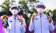 한국 양궁의 ‘무서운 막내 콤비’가 2020 도쿄올림픽에서 한국선수단에 첫 금메달을 안겼다. 2000년대 태어난 김제덕(17·경북일고)과 안산(20·광주여대)이 그 주인공이다. 김제덕과 안산은 24일 일본 도쿄의 유메노시마공원 양궁장에서 열린 혼성단체전 결승전에서 네덜란드의 스테버 베일러르-가브리엘라 슬루서르 조를 5-3(35-38, 37-36, 36-33, 39-39)으로 꺾고 서로에게 금메달을 걸어줬다. 도쿄 올림픽에 출전한 남자 양궁 선수 64명 가운데 가장 어린 김제덕은 한국 남자 양궁 사상 최연소(17세 3개월) 올림픽 금메달리스트라는 영광을 안았다. 전날 랭킹라운드에서 680점을 쏴 올림픽 신기록을 25년 만에 깨뜨린 안산 역시 올림픽 데뷔 무대를 화려하게 장식했다. 김제덕과 안산은 이번 올림픽에서 사상 첫 양궁 3관왕을 향한 1차 관문을 넘었다. 혼성단체전은 남녀 1명씩 조를 이뤄 한 세트에 4발씩(남자 2발, 여자 2발) 화살을 쏜다. 이기면 2점, 무승부면 1점을 따는 방식으로 5점을 먼저 얻는 팀이 승리한다. 시위를 당기자마자 힘차게 내려놓는 최고 시속 201km의 김제덕 화살과 침착하게 날아간 189km의 안산 화살이 절묘하게 시너지를 냈다. 인도와의 8강전에서 4세트 잠시 안산이 흔들리자 동생 김제덕이 10점을 쏘며 안산에게 주먹을 맞대고 힘을 불어 넣었다. 멕시코와 4강전에서도 2, 3세트 4발을 연달아 꽂은 김제덕이 안산에게 적극적으로 바람의 방향 등을 알려주며 파이팅을 했고 안산이 마지막 발을 10점에 꽂아 넣으며 5-1 완승을 거뒀다. 결승전에서 네덜란드가 예상 외로 선전을 하며 1세트를 가져가 위기를 맞았지만 둘은 서로의 호흡에 집중했다. 2세트 안산이 마지막 4번 째 발을 10점에 꽂고 한 점 차로 2-2 균형을 맞추며 흐름을 반전시켰다. 3세트를 36-33으로 잡은 김제덕과 안산은 4세트에서 첫 두 발을 나란히 10점에 명중시켜 기세를 이어갔다. 10점으로 맞장구를 친 네덜란드와 39-39로 비기며 금메달을 확정지었다. 경기 후 안산은 “한국 선수단 첫 금메달을 따게되서 영광이고, 저의 기운이 대표팀에 전해졌으면 한다”고 기뻐했다. 매 세트 첫 번째 순서마다 ‘화이팅’, ‘코리아 파이팅’이라고 크게 기합을 넣으며 긴장을 이겨낸 김제덕은 “먼저 쏘고 나서 누나에게 ‘자신있게 우리 것만 하자’고 말해줬다”며 경기에서 집중했던 상황을 설명했다. 안산은 4세트 네덜란드가 39점을 쏘고 한국이 30점인 상황에서 마지막 한 발 쏠 때에 대해 “무조건 9점, 10점 상관없이 노란 과녁만 맞추자는 생각으로 임했다. 제덕과 호흡이 너무 잘 맞았다”고 웃었다. 김제덕과 안산은 전날 열린 랭킹라운드에서 나란히 1위를 차지해 한국 대표팀의 선배들을 모두 제치고 이번 대회 신설된 혼성 단체전 출전권을 따내면서 돌풍을 예고했다. 올림픽 경험도 전혀 없었지만 두 선수는 위기에도 흔들림 없이 정상을 향해 걸어 나갔다. 김제덕이 시니어 무대에 나선 건 올해가 처음이다. 천재 궁사로 이름을 날리던 그는 2019년 도쿄올림픽 선발전에서 어깨 부상으로 기권하면서 올림픽 출전의 꿈이 날아가는 줄 알았다. 하지만 신종 코로나 바이러스 감염증(코로나19) 사태로 올림픽이 1년 연기되면서 다시 기회를 잡았다. 파이팅이 넘치며 두려움을 모르는 강심장이 장점이다. 초등학교 시절 ‘영재발군단’이라는 TV 프로그램에 출연해 양궁 신동으로 소개되기도 했다. 광주체고 출신인 안산은 2019년 독일 베를린 월드컵에서 개인전과 혼성전 2관왕에 오르며 주목받았다. 차분한 성격에 강한 정신력을 지녔다는 평가다. 2016 리우데자네이루올림픽에서 남녀 개인전과 단체전에 걸린 4개의 금메달을 독식한 한국 양궁은 도쿄에서는 한 개 더 추가해 5개 전 종목 석권을 노린다. 쾌조의 출발을 보인 한국 양궁은 25일 여자 단체전 우승에 도전한다. 여자 단체전은 정식 정목으로 채택된 1988 서울 올림픽부터 단 한 번도 금메달을 놓친 적이 없다. 도쿄에서 시상대 꼭대기에 선다면 9회 연속 금메달의 금자탑을 쌓는다. 혼성 단체전 동메달은 준결승에서 터키를 6-2로 이긴 멕시코 루이스 알바레스-알레한드라 발렌시아 조에게 돌아갔다.도쿄=유재영 기자 elegant@donga.com}