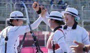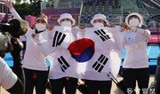 한국 여자 양궁이 전무후무한 올림픽 단체전 9연패를 달성했다. 강채영(25·현대모비스), 장민희(22·인천대), 안산(20·광주여대)으로 구성된 한국 여자 양궁 대표팀은 25일 일본 도쿄 유메노시마공원 양궁장에서 열린 2020 도쿄 올림픽 여자 단체전 결승에서 크세니야 페로바, 옐레나 오시포바, 스페틀라나 곰보에바로 팀을 꾸린 러시아올림픽위원회(ROC)에 세트스코어 6-0(55-54, 56-53, 54-51)으로 완승을 거뒀다. 한국 양궁은 올림픽에 양궁 단체전이 처음 도입된 1988년 서울 대회부터 이번 대회까지 한 번도 놓치지 않고 9개의 금메달을 모두 가져왔다. 세 명 모두 처음 출전한 올림픽이었지만 압도적인 실력을 앞세워 시상대 가장 높은 곳에 섰다. 한국은 8강에서 만난 이탈리아를 세트스코어 6-0으로 완파한 데 이어 준결승에서는 벨라루스를 5-1로 꺾었다. 결승에서 만난 ROC에게도 한 세트로 허용하지 않은 채 완승을 거뒀다. 1번 사수로 나선 안산이 기선을 제압하면, 2번 사수 강채영이 힘을 보태고, 3번 사수 장민희가 마무리를 짓는 전술이 제대로 먹혀들었다. 여자 대표팀의 막내 안산은 ROC와의 결승에서 6번의 화살 가운데 3번을 10점 과녁에 꽂아 넣으며 승리의 주역이 됐다. 하루 전 김제덕(17·경북일고)과 함께 나선 혼성전에서 한국 선수단에 첫 금메달을 안겼던 안산은 연이틀 금메달을 목에 걸며 2관왕에 올랐다. 안산은 27일부터 시작되는 여자 개인전을 통해 올림픽 양궁 역사상 첫 3관왕에 도전한다. 64명의 선수가 출전하는 여자 개인전은 27~29일 32강전을 치른다. 그리고 30일 16강부터 결승전까지를 하루에 치른다. 여자 개인 결승은 30일 오후 4시 45분에 열린다.도쿄=유재영기자 elegant@donga.com이헌재 기자uni@donga.com}