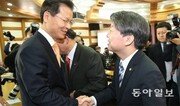 경기 고양갑에 출마한 새누리당 손범규 후보(맨 위)가 29일 덕양구 화정터미널 인근에서 유권자를 만나 악수하고 있다. 정의당 심상정 후보(맨 아래)는 이날 일산 동구의 한 어린이집에서 학부모들과 인사한 뒤 보육 문제에 대한 의견을 들었다. 고양=홍진환 기자 jean@donga.com}
