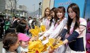 걸그룹 ‘스텔라’ 멤버들이 5일 식목일을 맞아 서울 종로구 동아미디어센터 광장 앞에서 열린 ‘무궁화 사랑 나라 사랑’ 행사에서 시민들에게 무궁화 묘목을 나눠주고 있다. 홍진환 기자 jean@donga.com}