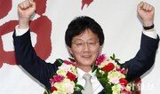 무소속 유승민 당선자(대구 동을)가 13일 오후 자신의 선거사무소에서 꽃다발을 목에 걸고 지지자들에게 두 손을 들어 인사하고 있다. 대구=홍진환 기자 jean@donga.com}