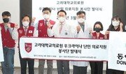 고려대의료원 우크라이나 난민 의료지원단이 16일 서울 성북구 고려대 메디사이언스파크에서 출국 전 발대식을 열었다. 지원단장인 조원민 고려대안산병원 흉부외과 교수(오른쪽에서 다섯 번째)와 김영훈 의무부총장(오른쪽에서 여섯 번째) 등 의료 전문인력 14명은 19일 폴란드로 출발해 우크라이나 접경 지역에서 약 2주간 머물며 난민 진료 활동을 벌인다. 의사 출신인 본보 이진한 의학전문기자(왼쪽에서 다섯 번째)도 참여해 진료와 취재를 병행한다. 신원건 기자 laputa@donga.com}
