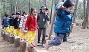 18일 부산 부산진구 어린이대공원 내 숲체험학습센터에서 어린이들이 통나무 걷기체험을 하고 있다. 이곳에서 연말까지 진행되는 숲체험은 생애주기별 맞춤형 과정으로 구성돼있다. 참가신청은 부산시 통합예약 홈페이지에서 선착순으로 가능하다. 부산= 박경모 기자 momo@donga.com}