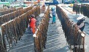 21일 부산 기장군 공수마을 어민들이 갓 수확한 미역을 건조대에 널고 있다. 기장 앞바다는 난류와 한류가 교차하는 곳으로 물살이 세고 일조량이 풍부해 미역이 자라는 데 최고의 조건이다.박경모 기자 momo@donga.com}