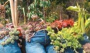 경남 통영의 한 농원에 있는 청바지 화단입니다. 빅 사이즈 청바지와 다육이의 만남이네요. 바람이 잘 통하고 물을 뿌려도 흡수가 잘된다고 하네요. 버리는 옷이 재활용돼 눈길을 끄는 화단으로 변신했으니 일석이조네요. 통영=박경모 기자 momo@donga.com}