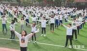 11일 부산 연제구 연산초등학교 학생들이 3·1운동과 임시정부 수립 100주년을 맞아 만세운동을 재연하는 ‘100년의 함성 플래시몹’을 펼치고 있다. 부산지역 25개 초중고등학교 25곳에서 15일까지 임정 100주년 기념행사를 연다. 박경모 기자 momo@donga.com}