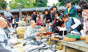 3일 오전 대구 동구 용수동 동화사 집단시설지구 주차장. 전통 사찰을 형상화한 간이 건물 수십 채가 눈에 들어왔다. 입구에는 ‘팔공산 승시(僧市)’라는 푯말이 서 있다. 한 스님이 보따리에서 두툼한 승복을 꺼냈다. 그러자 상대방은 목탁과 염주를 내놨다. 흥정은 미소와 합장으로 이뤄졌다. 교환 물품 중에는 공양 그릇, 법문 등도 보였다. 김영주 씨(42·여)는 “스님들이 장터를 열고 물건을 교환하는 모습이 이채롭다”면서 “아이들과 놀러 왔는데 체험공간도 있어서 좋았다”고 말했다. 대구 팔공산 승시가 재현돼 좋은 반응을 얻었다. 이날 조직위원회는 1일부터 3일까지 행사장에 10만여 명이 다녀갔다고 밝혔다. 스님들의 산중장터였던 승시는 고려시대부터 조선시대까지 번성했던 것으로 알려졌다. 마지막 승시는 팔공산 부인사에서 열렸다. 이번 승시는 이 모습을 재현한 셈. ‘승시마당’과 ‘전통문화 체험마당’ ‘다도와 사찰음식 마당’ ‘전시마당’ ‘전통공연 마당’ ‘전래놀이 마당’ 등 6가지 주제로 펼쳐졌다. 산중장터 모습을 되살린 ‘승시마당’에서는 경북 칠곡군 토향암 설봉 스님의 도자기 제작 시연이 진행됐다. 전남 해남군 대흥사 녹차 제다 시연, 경북 의성군 고운사 청국장 담그기 등도 선보였다. 목탁, 염주, 전통등, 목판화, 연꽃 양초 등을 만드는 전통문화체험장에는 수백 명의 가족 단위 참가자들이 몰렸다. 김태현 씨(48)는 “수백 년 전 스님들이 자급자족으로 조달했던 생활물자들의 면면이 신비롭게 느껴진다”고 말했다. 이번 승시 재현에는 대구시를 비롯해 동화사, BBS대구불교방송 등이 참여했다. 전통문화 복원과 부인사 고려 초조대장경 제작 천년을 기념하는 의미를 담았다. 내년부터는 시민 참여폭을 확대할 방침이다. 행사 기간도 2011년 대구세계육상선수권대회와 맞춰 외국인 관광코스와 연계하는 등 대구 대표 문화축제로 발돋움시킨다는 복안이다. 행사를 주관한 대구불교방송 허운 스님은 “아직 미흡한 점이 많아 문헌연구와 함께 재현 방안을 계속해서 찾을 것”이라며 “내년에는 승시에서 나타나는 스님들의 청빈한 모습을 시민들이 배울 수 있도록 할 생각”이라고 말했다. 김연수 대구시 행정부시장은 “승시가 간직한 천년 문화유산을 세계화 해 문화도시 대구의 이미지를 높이겠다”고 강조했다.장영훈 기자 jang@donga.com}