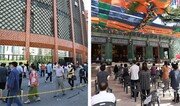 신종 코로나바이러스 감염증(코로나19) 확산을 막기 위해 전국 교회에 내려진 ‘소모임 금지’ 조치 해제 후 첫 주말을 맞아 26일 서울 영등포구 여의도순복음교회에서 신도들이 거리 두기를 지키며 교회에 들어서고 있다(왼쪽 사진). 같은 날 서울 종로구 조계사에서도 신도들이 간격을 벌린 채 법회에 참여하고 있다. 김재명 기자 base@donga.com}