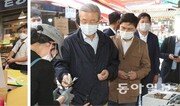 여야 두 대표가 18일 나란히 전통시장을 찾아 신종 코로나바이러스 감염증(코로나19)으로 생계가 어려워진 전통시장 상인들을 위로했다. 서울 종로구 통인시장에서 선물용 사과를 살펴보는 이낙연 더불어민주당 대표(왼쪽 사진)와 서울 중구 남대문시장에서 떡을 사고 있는 김종인 국민의힘 비상대책위원장. 김재명 기자 base@donga.com}