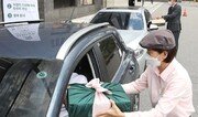 25일 경기 고양시 현대백화점 킨텍스점에서 고객들이 미리 주문한 추석 선물세트를 차 안에서 전달받고 있다. 현대백화점 킨텍스점은 추석 선물세트를 지정된 시간에 방문해 차에서 내리지 않고 받는 ‘드라이브스루’ 판매 제도를 도입했다. 고양=김재명 기자 base@donga.com}