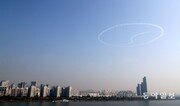 19일 블랙이글스가 27일 서울 용산구 전쟁기념관에서 열리는 ‘장진호 전투영웅 추모행사’를 앞두고 이날 오전 사전 연습비행을 하고있다. 블랙이글스가 태극문양을 만들고 있다.김재명 기자 base@donga.com}
