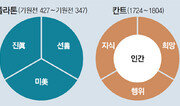 철학사를 다룬 책을 읽기란 쉽지 않다. 손에 잡히지 않는 개념이 줄줄이 이어진다. 게다가 쓰인 용어는 죄다 생경한 것들이다. 현대철학으로 갈수록 독해의 난도는 더 높아진다. 25년 전 독일에서 출간된 이 책은 3500년 철학사를 요약했다. 제목에서 짐작되듯 일반 독자에게 친절하게 다가가고자 도해(그림풀이)를 적극 활용한 것이 큰 차별점이다. 소크라테스와 공자부터 현대의 후기 구조주의까지 철학의 역사를 주요 학파 및 사상가를 중심으로 다루면서 핵심 개념을 112개의 표와 그림으로 풀어냈다. 번역 역시 정갈하다. 책을 훑다 보면 공부 잘하는 친구의 ‘만점 노트’를 훔쳐보는 느낌이 든다. 철학의 기본 탐구 대상에 대한 플라톤과 칸트의 입장을 표현한 도해를 보면 텍스트보다 직관적으로 개념을 이해하는 데 도움을 준다. 그 덕분에 이 책은 프랑스 영국 미국 일본 등 18개국에서 번역됐다. 물론 모든 도해와 글이 이 같은 수준은 아니다. ‘관심 있는 철학자를 다룬 꼭지를 먼저 읽어도 앞 꼭지에 구애받지 않는다’는 출판사의 홍보가 무색하리만치 어떤 부분은 도해를 샅샅이 살피고 설명을 반복해 읽어도 낯선 외국어처럼 느껴진다. 결국 읽는 이의 철학지식 내공에 따라 만족도가 갈릴 책이다. 만점 노트가 모두에게 쓸모 있는 것은 아니지 않나. 구가인 기자 comedy9@donga.com}