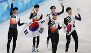 남자 쇼트트랙 대표팀은 5000m 계주에서 12년 만에 값진 은메달을 목에 걸었다. 16일 중국 베이징 서우두 실내경기장에서 열린 2022 베이징 겨울올림픽 쇼트트랙 5000m 계주 결선에서 6분41초679의 기록으로 캐나다(6분41초257)에 이어 두 번째로 결승선을 통과했다. 남자 계주가 올림픽에서 메달을 딴 건 2010년 밴쿠버 대회 은메달 이후 12년 만이다. 이날 박장혁(24·스포츠토토), 곽윤기(33·고양시청), 이준서(22·한국체대), 황대헌(23·강원도청) 순으로 레이스에 나선 한국은 경기 초반 선두로 치고 나가며 좋은 레이스를 펼쳤다. 올 시즌 월드컵 남자 계주 1위 캐나다와 치열한 선두 다툼을 하던 한국은 13바퀴를 남기고 다시 2위로 내려앉았고 결국 두 번째로 경기를 마쳤다. 동메달은 6분43초431로 이탈리아에 돌아갔다. 남자 대표팀은 2010 밴쿠버, 2018 평창에 이어 세 번째이자 마지막 올림픽에 도전했던 맏형 곽윤기를 필두로 이번 대회 내내 찰떡 호흡을 보여줬다. 이번 대회 전까지 밴쿠버 5000m 계주 은메달이 유일했던 곽윤기는 마지막 올림픽에서 생애 첫 금메달에 도전했지만 금만큼 값진 은메달을 하나 더 목에 걸었다. 밴쿠버 시상식 당시 시상대 위에서 ‘아브라카다브라’ 시건방 춤을 선보였던 곽윤기는 이날 경기 뒤 열린 간이 시상식에서 방탄소년단(BTS)의 ‘다이너마이트(Dynamite)’ 춤으로 팬들의 기대에 부응했다. 박장혁의 부상 투혼도 빛났다. 7일 남자 1000m 준준결선 도중 중국 우다징과의 충돌 과정에서 왼쪽 손등이 찢어져 11바늘을 꿰맸던 박장혁은 붕대를 감고 경기에 나섰다. 전재수 헝가리 대표팀 감독이 어렵사리 큰 사이즈 장갑을 구해 주기도 했다. 11일 남자 5000m 계주 준결선에 불참했던 그는 이날 결선에서는 팀의 첫 번째 주자로 나서 역주했다. 손의 통증을 참아가며 다음 주자인 곽윤기의 엉덩이를 힘껏 밀었다. 막내 이준서도 발목 통증을 참아가며 메달을 합작했다. 결선에 나서진 못했지만 준결선에서 김동욱(29·스포츠토토)의 역주도 빛났다. 경기 뒤 곽윤기는 “금메달을 따고 싶었는데 못 따서 죄송한 마음이 크다”면서도 “(그래도) 5000만 국민 모두와 함께 뛴다는 마음으로 달렸다”라고 말했다. 남자 1500m 금메달에 이어 대회 두 번째 메달을 건 황대헌은 “좋은 동료와 합심해 값진 결과를 얻었다”며 “색깔이 중요한 게 아니다. 지금도 이 순간이 너무 행복하고 값지다”라고 벅찬 마음을 전했다.강홍구 기자 windup@donga.com베이징=강동웅 기자 leper@donga.com}