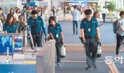 국내에서 콜레라, C형간염, 일본뇌염 환자가 발생한 데 이어 동남아 지역에서 지카 바이러스가 급속도로 확산되는 가운데 5일 인천국제공항 입국장에서 직원들이 소독액을 뿌리며 방역 작업을 하고 있다. 인천=최혁중 기자 sajinman@donga.com}