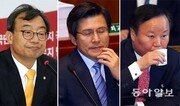 ‘최순실 게이트’가 대한민국을 패닉 상태에 빠뜨린 가운데 박근혜 대통령이 28일 청와대 수석비서관들에게 일괄 사표를 제출하라고 지시했다. 이에 앞서 이정현 새누리당 대표(왼쪽)가 이날 박 대통령과 긴급회동을 갖고 이번 사태 수습을 위해 인적 쇄신에 속도를 내달라고 요청했다고 국회에서 설명하고 있다. 황교안 국무총리(가운데)는 이날 국회 예결특위 전체회의에서 “외국에 나가 있는 최 씨가 반드시 돌아오게 할 것”이라고 말했고, 김재원 대통령정무수석비서관은 “인적 쇄신은 인사 시스템상 시간적 여유가 필요하다”고 해명했다. 최혁중 기자 sajinman@donga.com}