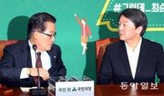 30일 오후 국회에서 열린 국민의당 ‘정국 대응 긴급대책회의’에 참석한 박지원 비상대책위원장 겸 원내대표(왼쪽)와 안철수 전 상임공동대표가 대화를 나누고 있다. 이날 박 위원장은 국정 개입 의혹을 받고 있는 최순실 씨 귀국 및 청와대 비서진 사표 제출과 관련해 “우병우 대통령민정수석비서관에 의해 작성된 각본”이라고 주장했다. 최혁중 기자 sajinman@donga.com}