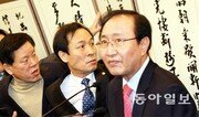 12일 오전 대권 선언을 한 각 당 예비후보들이 한 자리에 모였다. 서울 여의도구 전경련 FKI콘퍼런스 센터에서 열린 2017 동아 비지니스 서밋 행사였다. 바른정당의 유승민 후보는 다른 일정 때문에 불참했다. 선거를 앞두고 행사에 참여하는 후보자들은 카메라 앞에서 동시에 포즈를 취한다. 모든 후보들을 골고루 노출해야 하는 주최 측이 기념촬영이라는 ‘안전한’ 형식을 택하기 때문이다. 이날 행사에서는 정세균 국회의장을 중심으로 대선주자들이 기념촬영을 준비했다. 이 과정에서 각 후보들이 치열한 자리 싸움을 벌이는 과정을 포착했다.맨 처음에는 심상정 후보, 안철수 후보, 정세균 의장, 문재인 후보 순서로 섰다. 자리를 잡지 못했던 홍준표 후보는 오른쪽 맨 끝으로 갔다. 이후 초청자 중심으로 한 번의 자리 바꿈이 있었다. 이 와중에 갑자기 홍준표 자유한국당 후보가 가운데로 쑥 들어왔다.옆에 있던 안철수 후보와 문재인 후보의 얼굴이 잠시 일그러지는 듯 했다. 둘은 곧바로 평정을 회복했다.결국 이런 사진이 나왔다.원내 의석수 순서로 서고 싶었던 것 같다. 동아일보 사진부 원대연·최혁중 기자}