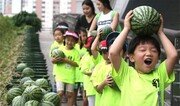 21일 서울 금천구 시흥대로 금천구청 옥상텃밭에서 구립 어린이집 원생들이 고사리손으로 직접 수확한 수박을 들고 즐거워하고 있다. 박영대 기자 sannae@donga.com}