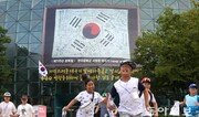 12일 서울시청 본관 외벽에 일제강점기 독립을 위해 싸운 광복군 70여 명의 서명과 다짐이 적힌 ‘한국광복군 서명문 태극기’가 걸려 있다. 이 태극기 원본은 등록문화재 제389호로 ‘굳세게 싸우자’, ‘우리의 독립은 단결이다’ 등의 문구가 적혀 있다. 박영대 기자 sannae@donga.com}