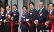 9일 경기 하남시 미사대로에 있는 신세계그룹 복합쇼핑몰 스타필드 하남 개장 기념행사에서 정용진 신세계 부회장(오른쪽에서 세 번째)과 스타필드 하남의 합작업체인 미국 터브먼사의 로버트 터브먼 회장(오른쪽에서 두 번째) 등 내빈들이 테이프 커팅을 하고 있다. 하남=박영대 기자 sannae@donga.com}