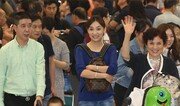 중국 국경절 연휴(10월 1∼7일)를 앞둔 30일 인천국제공항으로 입국한 중국인 관광객들이 손을 흔들며 공항을 빠져나가고 있다. 인천=박영대 기자 sannae@donga.com}
