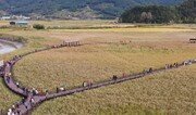 20일 전남 순천만 갈대밭을 찾은 관광객들이 황금빛의 갈대밭 사이를 걸으며 가을 정취를 즐기고 있다. 박영철 기자 skyblue@donga.com}