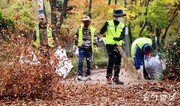 13일 광주 북구 운암동 광주문예회관 주변 산책로에서 북구청 직원들이 전동 송풍기를 이용해 수북하게 쌓인 낙엽을 치우고 있다. 박영철 기자 skyblue@donga.com}