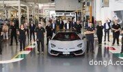 람보르기니는 플래그십 스포츠카 ‘아벤타도르(Aventador)’가 9년 만에 누적 생산량 1만대를 돌파했다고 14일 밝혔다. 아벤타도르는 이탈리아 산타가타 볼로냐(Sant’Agata Bolognese) 람보르기니 공장에서 생산된다.1만 번째 아벤타도르는 고성능 모델인 ‘아벤타도르 SVJ 로드스터’로 기록됐다. 아벤타도르 라인업 중 가장 강력한 버전의 오픈톱 모델이다. 6.5리터 V12 가솔린 자연흡기 엔진과 7단 자동변속기가 조합된 모델로 최고출력 770마력, 최대토크 70.6kg.m의 강력한 성능을 발휘한다. 정지상태에서 시속 100km 도달에 소요되는 시간은 2.9초다. 브랜드 경량화 기술이 집약돼 공차중량은 1575kg에 불과하다.역사적인 1만 번째 아벤타도르는 매트 그레이 계열 그라지오 아체소(Grigio Acheso) 컬러를 바탕으로 레드 계열 로쏘 미미르(Rosso Mimir) 컬러로 포인트 줬다. 실내는 애드 퍼스넘(Ad Personam) 옵션으로 붉은 빛이 감도는 로쏘 알랄라(Rosso Alala) 컬러와 블랙이 조화를 이룬다. 구매자는 태국 국적인 것으로 전해졌다.아벤타도르 SVJ 전신 모델인 ‘아벤타도르 LP700-4 쿠페’는 지난 2011년 세계 최초로 공개됐다. 람보르기니 슈퍼스포츠카 모델 중 처음으로 탄소섬유강화플라스틱 소재 셀 모노코크 바디가 적용되면서 슈퍼스포츠카 시장에 새로운 방향성을 제시했다. 당시 신형 V12 엔진은 최고출력 700마력, 최대토크 70.4kg.m의 성능을 발휘했다. 이후 조금씩 개선을 이루면서 고성능 버전까지 등장했다. 브랜드 플래그십 계보를 잇는 모델로 쿤타치(Countach)로부터 이어져온 걸윙(gull-wing) 도어가 장착됐다. 아벤타도르 첫 로드스터 버전은 1년 뒤인 2012년 선보였다. 루프 패널은 탄소섬유소재로 이뤄져 가벼우면서 높은 강성을 갖췄다.4년 뒤 선보인 아벤타도르 S는 공기역학설계와 서스펜션을 개선한 모델로 최고출력 740마력의 힘을 내도록 만들어졌다. 사륜구동 시스템은 새로 개발된 후륜 스티어링의 안정성을 위해 조정돼 뒤축에서 높은 토크를 발휘할 수 있도록 만들어졌다. 최고 성능 버전인 아벤타도르 SVJ는 2018년 공개됐다. 지구에서 가장 빠른 슈퍼스포츠카를 목표로 개발됐다. 1만 번째로 생산된 SVJ와 동일한 파워트레인이 적용됐으며 오픈톱 장치를 덜어내 무게는 50kg가량 가볍다. 시속 100km 도달에 걸리는 시간은 2.8초다. 현존하는 가장 빠른 슈퍼스포츠카를 목표로 만들어진 만큼 독일 뉘르부르크링 노르트슐라이페 서킷(20.6km)에서 랩타임 6분44초97의 기록을 세웠다. 포르쉐 911(991) GT2 RS 개조차(6분40초33)에 이어 2위에 해당하는 기록이다.동아닷컴 김민범 기자 mbkim@donga.com}