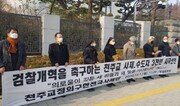 천주교 사제와 수도자 약 4000명이 “검찰은 이 순간까지 자신이 걸어온 시간을 돌아보면서 참회하길 바란다”며 검찰개혁 지지를 발표했다.천주교정의구현전국사제단(이하 사제단)은 7일 서울 서초구 대검찰청 앞에서 기자회견을 열고 ‘검찰개혁을 촉구하는 천주교 사제·수도자 3951인 선언’을 전했다. 이들은 “잠잠히 고요하게 지내야 할 사제와 수도자들이 나선 것은 숱한 희생과 헌신 끝에 이룩한 우리의 민주주의가 또다시 갈림길에 놓였기 때문”이라며 “많은 사람이 검찰개혁에 주목하는 이유는 지금이 아니면 어려울 것이라는 위기의식 때문일 것”이라고 했다.이어 “누구라도 가졌던 것을 내놓기는 쉽지 않고, 하물며 독점적으로 행사하던 권한들을 포기하는 일은 더욱 그럴 것”이라며 “하지만 매미 같은 미물도 때가 되면 허물을 벗듯 과거의 허물을 벗는 일을 겁낼 필요가 없다”고 말했다. 그러면서 사제단은 윤석열 검찰총장에 대해 검찰개혁의 ‘걸림돌’이라고 주장했다. 이들은 “남의 허물에 대해서는 티끌 같은 일도 사납게 따지면서 자신에게는 한없이 관대해지는 검찰총장의 이중적 태도는 검찰의 고질적 악습을 고스란히 보여준다”고 지적했다. 아울러 “특권층의 비리와 범죄에 대해서는 얼마든지 눈 감아 주지만 자신의 이해와 맞지 않으면 어떤 상대라도, 그것이 국민이 선출한 최고 권력이라도 거침없이 올가미를 들고 달려드는 통제 불능의 폭력성을 언제까지나 참아줄 수 없다”고 목소리를 높였다.사제단은 사법부에도 책임있는 자세를 요구했다. 이들은 “‘재판관 사찰’이 만천하에 드러났는데도 대법원장을 비롯한 사법부 구성원들은 아직까지 뚜렷한 이의를 제기하지 않는다”며 “재판관에 대한 사찰과 정보정치를 업무상 관행이라 강변해도 묵묵부답하는 것을 보니 불안과 의구심을 떨치기 어렵다”고 했다. 이날 선언에는 김희중 대주교와 주교 6명, 사제 926명, 남자수도회(사제·수사) 227명, 여자수도회 2792명 등 총 3951명이 참여했다.이에 앞서 지난 1일에는 불교·천주교·개신교·원불교로 구성된 종교계 100인도 검찰개혁 지지 성명을 발표한 바 있다.조혜선 동아닷컴 기자 hs87cho@donga.com}