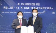 동원그룹이 KT가 주도하고 있는 인공지능 산학연 협의체(AI원팀, AI One Team)에 합류했다.동원그룹은 27일 서울 종로구 소재 KT 광화문빌딩 이스트에서 KT와 ‘대한민국 인공지능(AI) 1등 국가를 위한 업무협약(MOU)’을 체결했다. 이날 체결식에는 박인구 동원그룹 부회장과 구현모 KT 대표이사 등 주요 관계자들이 참석했다.지난 2월 출범한 AI원팀은 KT와 현대중공업그룹, LG전자, LG유플러스, 한국투자증권, 한양대, 한국과학기술원(KAIST), 한국전자통신연구원(ETRI) 등이 참여한 산학연 협의체다. 이번에 동원그룹이 참여하면서 AI 기술이 식생활과 물류 플랫폼 등 보다 다양한 분야로 확산될 것으로 기대하고 있다.MOU에 따라 동원그룹은 AI원팀 참여 기업 및 기관들과 ▲AI를 활용한 식품제조·영업마케팅 업무혁신 ▲AI 스마트팩토리 구축 ▲AI 물류 통합플랫폼 구축 ▲산학연 연계 AI 인재양성 플랫폼 조성 등을 단계적으로 추진하기로 했다.동원그룹은 AI원팀 참여 전부터 관련 분야 혁신을 위해 다양한 노력을 기울여왔다고 전했다. 지난해 초 임직원들이 창의적으로 업무에 집중할 수 있도록 전 사업 부문에 걸쳐 ‘로봇 프로세스 자동화(RPA, Robotic Process Automaion)’ 적용을 활발히 추진하고 있다고 설명했다. 또한 작년 10월에는 한양대와 손잡고 중소·중견기업에게 AI 기술을 공유하는 국내 최초 AI센터 ‘한양AI솔루션센터’를 설립하기도 했다. 이번 AI원팀 합류를 계기로 보다 적극적으로 AI 기술을 활용한 식품생산 공정과 소비자 맞춤형 신제품 발굴, 비대면 판매 채널 강화 등을 추진한다는 방침이다.박인구 동원그룹 부회장은 “AI 기술에 대한 지속적인 관심과 투자가 동원그룹이 AI원팀에 참여하는 계기가 됐다”며 “AI 분야 최고 수준 기술과 노하우를 갖춘 기업 및 기업과 협업을 통해 새로운 가치를 창조하는 사회필요기업으로서 ‘AI 혁신’에 기여할 수 있도록 최선을 다할 것”이라고 말했다.구현모 KT 대표는 “반세기 동안 대한민국 식생활을 발전시켜온 동원그룹이 AI원팀에 참여하면서 국내 AI 생태계와 관련 산업 혁신이 가속화될 것으로 기대한다”며 “전 세계가 AI 기술 주도권을 놓고 치열한 경쟁을 벌이는 가운데 KT는 대한민국 AI 경쟁력 강화를 위해 AI원팀과 협업을 지속 강화해 나갈 것”이라고 전했다.동아닷컴 김민범 기자 mbkim@donga.com}