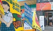 6일 서울 용산구 화상경마장 앞에서 지역주민과 시민단체 회원들이 화상경마장 영업을 반대하는 내용이 적힌 피켓을 들고 시위하고 있다. 변영욱 기자 cut@donga.com}