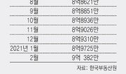 지난달 서울 아파트 평균 매매가격이 고가주택 기준인 9억 원을 넘은 것으로 나타났다. 3일 한국부동산원에 따르면 올해 2월 서울 아파트 평균 매매가격은 9억382만 원으로 전월(8억9725만 원)보다 657만 원(0.73%) 올랐다. 서울 아파트 평균 매매가격은 2019년 1월 8억 원을 넘은 뒤 그해 8월까지 7억 원대로 떨어졌다가 이후 꾸준히 상승하다가 이번에 9억 원을 넘었다. 민간 조사기관인 KB국민은행 리브부동산 통계상 서울 아파트 평균 매매가격은 이미 지난해 3월 9억 원을 넘었다. 지난달 10억6108만 원까지 뛰었다. 리브부동산 시세는 호가 영향이 상대적으로 커 한국부동산원 시세보다 통상 높게 형성된다. 한국부동산 통계로도 서울에서 고가주택인 9억 원이 평균 가격이 된 셈이다. 업계에서는 2019년 ‘12·16 부동산 대책’으로 9억 원이 넘는 고가주택에 대한 대출 규제가 강화된 뒤 9억 원 이하 중저가 주택으로 수요가 몰리면서 중저가 주택 가격을 밀어올린 영향이 크다고 보고 있다. 9억 원을 넘는 주택에는 취득세나 양도소득세율이 높게 적용된다. 9억 원 초과분의 주택담보인정비율(LTV)이 20%로 줄고 9억 원 초과 주택 보유자는 전세대출도 받을 수 없다. 김호경 기자 kimhk@donga.com}