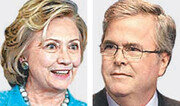 2016년 미국 대통령선거 가상대결에서 민주당 유력 후보인 힐러리 클린턴 전 국무장관이 공화당 선두 주자로 꼽히는 젭 부시 전 플로리다 주지사를 53% 대 41%의 득표율로 앞서고 있다는 여론조사 결과가 나왔다. 워싱턴포스트(WP)와 ABC방송이 지난달 24일부터 3일 동안 전국의 유권자 1000명을 상대로 조사한 결과 클린턴 전 장관은 여성과 비(非)백인 유색인종 그리고 젊은층에서 부시 전 주지사를 큰 차이로 앞서는 것으로 나타났다고 WP가 4월 30일 보도했다. 양자 대결에서 클린턴 전 장관을 지지한 유색인종 응답자는 74%로 부시 전 주지사의 20%보다 압도적으로 많았다. 여성 유권자도 59% 대 36%, 18∼39세 젊은층도 61% 대 33%로 클린턴 전 장관을 더 많이 지지했다. 부시 전 주지사는 백인 유권자 층에서 49% 대 45%라는 근소한 차이로 클린턴 전 장관을 앞섰을 뿐이다. 미국 정치 명문인 클린턴가(家)와 부시가의 대결로 관심을 모으고 있는 두 유력 후보의 대결에서 ‘가문 배경’이 두 후보에게 유리하게 작용할 것으로 조사됐다. 해당 가문에 호감을 가지고 있다는 응답은 클린턴가 66%, 부시가 54%인 것으로 나타났다. 클린턴 전 장관이 민주당 내에서 뚜렷한 선두를 차지하고 있는 것과는 달리 부시 전 주지사는 나머지 공화당 예상 후보들과 접전을 벌이고 있는 것으로 나타났다. 공화당 지지 응답자들을 상대로 한 조사에서 부시 전 주지사와 랜드 폴 상원의원이 14%로 공동 선두를 달렸다. 이어 마이클 허커비 전 아칸소 주지사(13%), 폴 라이언 하원의원(11%), 크리스 크리스티 뉴저지 주지사(10%) 등의 순이었다.워싱턴=신석호 특파원 kyle@donga.com}