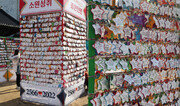 새해 소원을 적는 별 모양 메모지가 바구니에 가득합니다. 붉은 별이 상자 틈으로 살짝 나오니 마치 강아지가 혀를 내민 것 같네요. 귀엽고 밝은 소망 바구니의 모습을 보니 새해 소망은 ‘많이 웃기’로 해야겠네요. ―서울 종로구 조계사에서신원건 기자 laputa@donga.com}