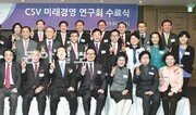 30일 서울 중구 소공로 플라자호텔에서 제1기 공유가치창출(CSV) 미래경영 연구회 수료식이 열렸다. CSV미래경영연구회는 서울과학종합대학원(aSSIST)과 동아비즈니스리뷰(DBR)가 만든 경영자 및 학계 인사들의 연구모임이다. 1기 회원은 최규복 유한킴벌리 사장(원우회장)과 황호택 동아일보 논설주간, 김효준 BMW코리아 사장, 김영기 ㈜LG 부사장, 조동성 서울대 교수 등 49명이다. 서울과학종합대학원 제공}