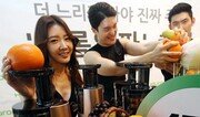 주방가전 기업 휴롬이 11일 오전 서울 종로구 휴롬주스 카페 광화문점에서 원액기 ‘휴롬 알파’를 선보이고 있다. 신제품 ‘휴롬 알파’는 분당 17회의 느린 회전으로 마찰열 등이 거의 발생하지 않아 채소와 과일의 영양소 손실을 최소화한다는 게 업체의 설명이다. 박영대 기자 sannae@donga.com}